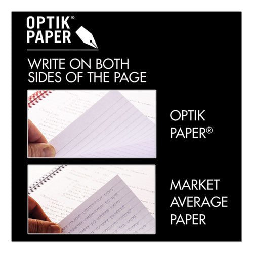 Depend on Black n' Red™ for your professional notetaking needs. Premium, bright white Optik Paper™ minimizes ink bleed, allowing you to write on both sides of every page to maximize your usable space, and each page's corners are tagged for SCRIBZEE®, a free app for scanning and saving your notebook pages to the cloud. Simply scan and then edit, organize and revise from your phone, your pad or computer. Textured hard cover delivers a sophisticated look and feel for the polished professional. Smooth spine with stitched binding makes it easy to slip the journal into a bag without worrying about snags, while ensuring it lies flat when open. An expanding pocket accommodates loose sheets, a ribbon page marker allows you to keep your place, and a bungee closure keeps everything together.