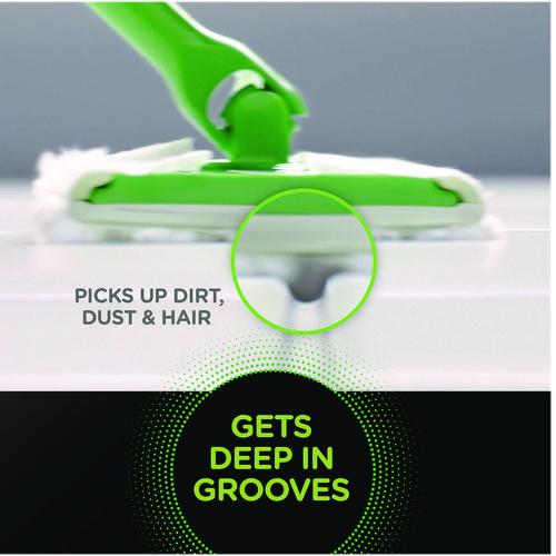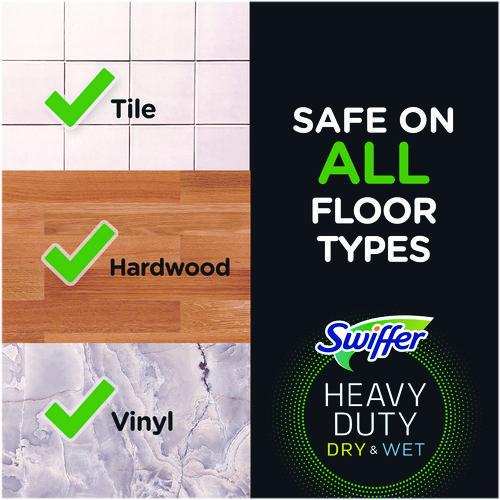 These heavy-duty dry disposable sweeping cloths feature over 30,000 3D fibers that brush into tight spaces to collect dust, dirt and pet hair. They have a stronger electrostatic charge to provide excellent particle collection. These disposable cloths are thicker and have deeper lift and lock pockets than multi-surface Swiffer® Sweeper dry cloths.