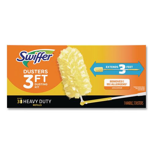 Now it's easier than ever to get to those hard-to-reach places. Pivoting head can be adjusted and locked into place for cleaning angled surfaces such as ceiling fans, cabinet corners and baseboards. Refill dusters sold separately. One handle and three dusters per box.Package Includes: (1) Handle; (3) Refills