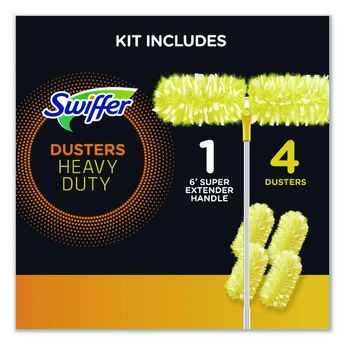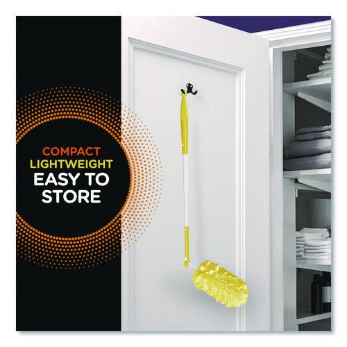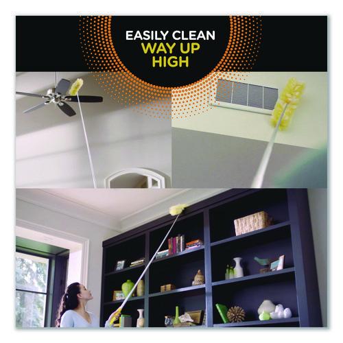 Handle extends up to 6 feet allowing you to reach more areas. Two duster attachments rotate and lock at multiple angles to expand your range. Great for use on fans, bookcases and light fixtures. Uniquely designed to Trap + Lock dust from every direction. One handle and four dusters per kit.Package Includes: (1) Super Extender Handle; (4) Dusters