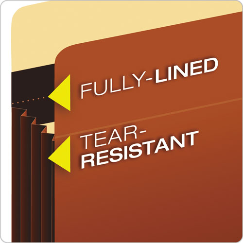 Ideal for frequently accessed files as well as long-term storage. Durable redrope file pockets deliver rip-proof, 100% Tyvek® lined gussets plus super-tough Tyvek® strip reinforcement along all critical stress points. Heavyweight 24 pt. covers resist wear and tear. Straight cut tabs.