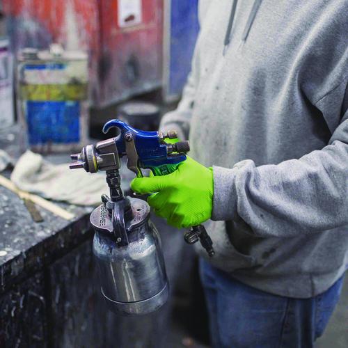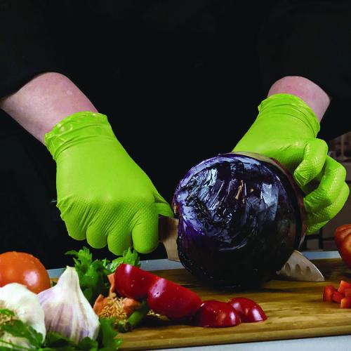 Gloveworks by AMMEX Heavy-Duty Industrial Nitrile Gloves stand up to the toughest jobs. They feature Raised Diamond Texture (RDT) which creates 60% more surface area for an exceptional liquid channeling grip. RDT provides a comfortable fit: fewer contact points with the skin increase airflow and reduce sweating vs. non-textured gloves.