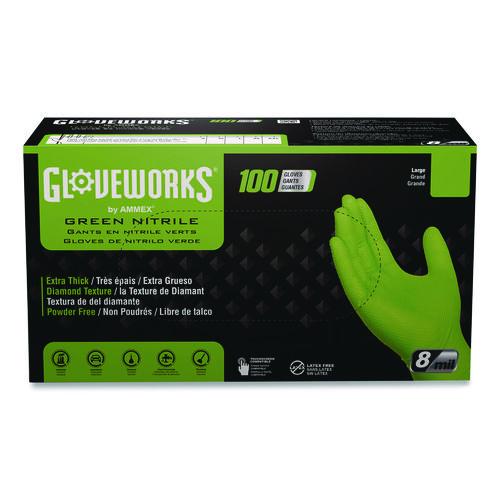 Gloveworks by AMMEX Heavy-Duty Industrial Nitrile Gloves stand up to the toughest jobs. They feature Raised Diamond Texture (RDT) which creates 60% more surface area for an exceptional liquid channeling grip. RDT provides a comfortable fit: fewer contact points with the skin increase airflow and reduce sweating vs. non-textured gloves.