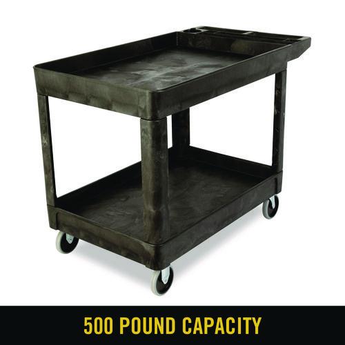 Handy, durable utility cart features rust-, dent-, chip- and peel-proof structural foam construction. Ergonomically designed push handle provides optimum hand placement and push height improving control and worker safety. Molded-in storage compartments, holsters, hooks and notches. Rounded corners and shelf walls won't damage furniture and walls. Variable grip-height handle improves control and worker safety. Built-in tool holster and molded-in fittings allow for easy addition of pipes or rods. 500 lb capacity.Note: This is a non-returnable item.