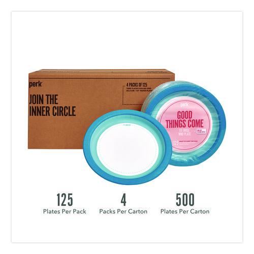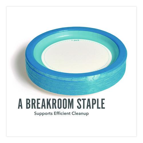 Carry the load back to your desk for a working lunch on these heavy-weight plates. Rims on the plates keep the good stuff inside and not in your lap. Greasy foods won't soak through the plate. Disposable plates support efficient cleanup after your events. Microwave-safe for limited reheating.