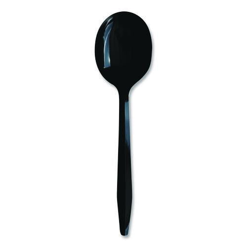 Heavyweight Polypropylene Cutlery, Soup Spoon, Plastic, Black, 1,000/Carton