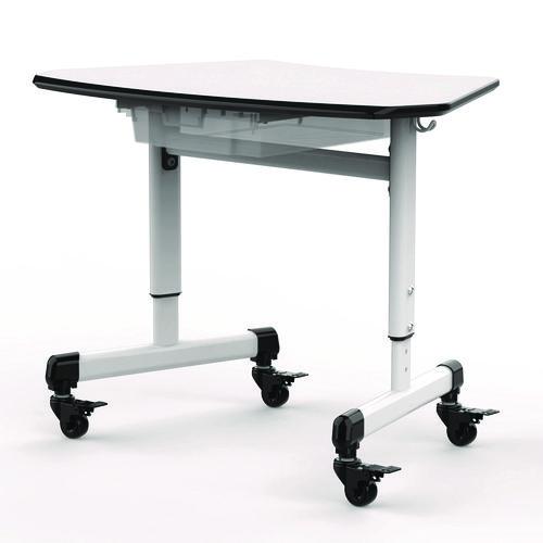 Luxor's height-adjustable trapezoid classroom desk makes it easy for students to work individually or in pods of up to eight desks. Thanks to its space-saving design, it also makes an excellent student desk for remote learning. Highlights include dual backpack hooks, plus a clear, removable MBS bin that provides a roomy place to store papers, pencils, and other small items. Four 2" casters (each with a locking brake) make it effortless for students and teachers to move the desk where it is needed. The tough laminate top is scratch-resistant and easy to clean, plus it's edged with a tough and protective bumper molding to protect walls and furniture. This versatile student desk is perfectly sized for young learners and offers a height adjustment so it can fit kids of many ages.Note: This is a non-returnable item.