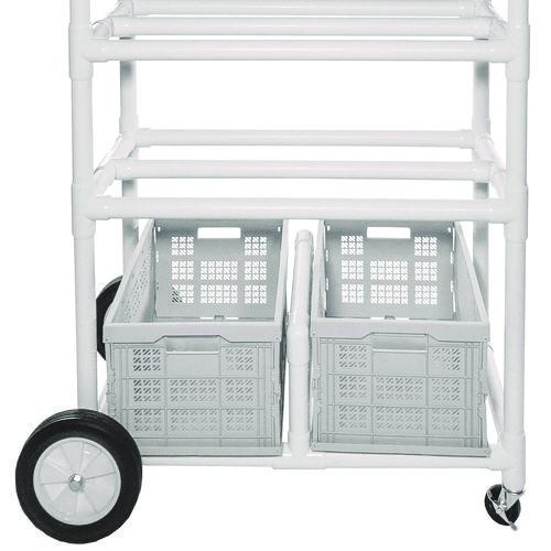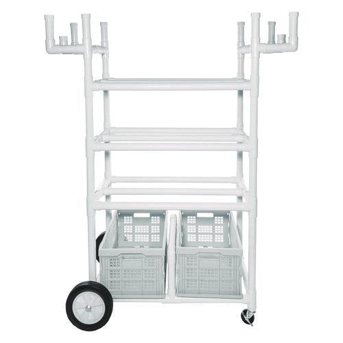 The Champion Sports High Impact All-Terrain Heavy-Duty Cart is the ultimate in versatile indoor and outdoor equipment transport. Constructed of durable plastic with two large removable baskets, this cart rolls on heavy-duty all-terrain rear wheels and front swivel casters. The cart also features convenient foldaway handles and the space to carry up to 24 balls, plus hoops, jump ropes and other accessories.Note: This is a non-returnable item.