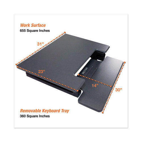 High Rise Height Adjustable Standing Desk with Keyboard Tray, 31" x 31.25" x 5.25" to 20", Gray/Black