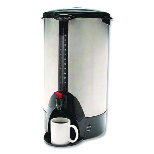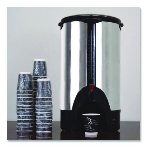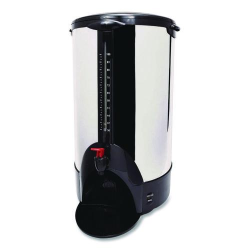 With brew times of one cup per minute, this high-capacity urn is great for offices and events. Double-wall insulation ensures that beverages stay warm for hours. Permanent filter basket and locking safety lid add convenience and piece of mind. Plastic carrying handles allow you to move the urn, even when percolating.