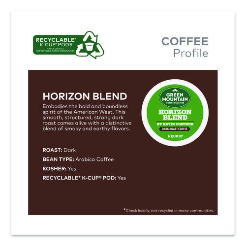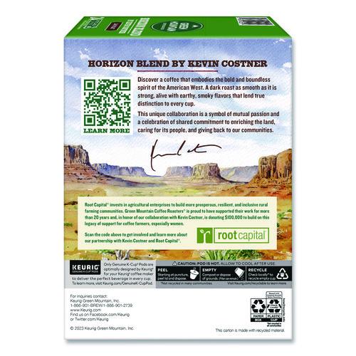 Fix your eyes on the horizon as you take in every sip, courtesy of Kevin Costner. This coffee embodies the bold and boundless spirit of the American west. A dark roast as smooth as it is strong, alive with earthy, smoky flavors that lend true distinction to every cup, just like a certain someone brings true distinction to every role. This unique collaboration with an American icon is a symbol of mutual passion and a celebration of shared commitment to caring for its people and giving back to communities. Every Green Mountain Coffee Roasters K-Cup pod reflects the brand's commitment to source responsibly and is filled with freshly ground coffee beans and brews a deliciously great-tasting cup of coffee, every time. This K-Cup pod is compatible with all Keurig single-serve coffee makers.Note: This is a non-returnable item.