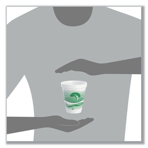Horizon Hot/Cold Foam Drinking Cups, 12 oz, White/Green, 25/Bag, 40 Bags/Carton
