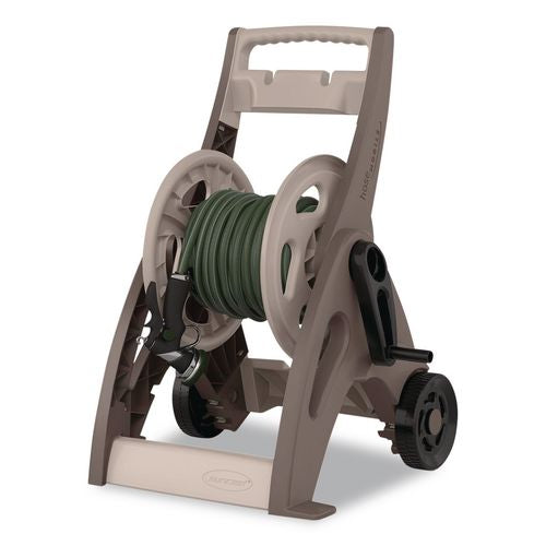 This Hosemobile® Hose Reel Cart holds up to 175 ft. of standard 5/8" hose. The built-in wheels make it easy to transport through your garden, and the convenient hooks on the handle securely hold the end of the leader hose or garden hose. Constructed of durable, weather-resistant resin, it is built to last.Note: This is a non-returnable item.