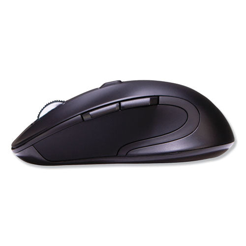 The Innovera® Hyper-Scrolling wireless mouse lets you quickly and accurately scroll through documents and web pages with the simple flick of a finger. Scroll lock button for precision scrolling. Works accurately on most any desktop surface. The ergonomic design and rubber surfaces ensure all day comfort and productivity. The 2.4 GHz plug-and-play dongle conveniently stores in the base of the mouse. Easy to reach forward and back buttons for easier document or web browsing. Includes two AAA batteries.