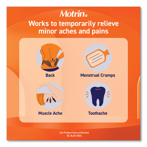 Get relief from minor aches and pains with Motrin® IB tablets. Safe and effective when used as directed, these ibuprofen tablets temporarily reduce fever and relieve minor aches and pains due to the common cold, headache, muscular aches, minor pain of arthritis, toothache, backache, and menstrual cramps. Each Motrin® IB tablet contains 200 milligrams of ibuprofen.Note: This is a non-returnable item.
