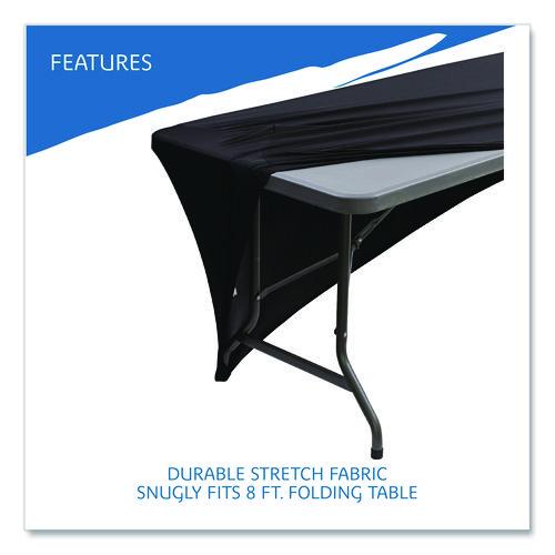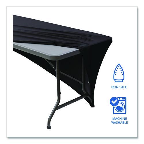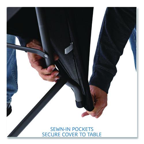 Easily transform resin- or laminate-wood-top tables into elegant presentation platforms in seconds. Tablecloth fits snug over the table for a tailored fit, and reinforced leg-pockets keep the tablecloth secured to the table while preventing tears and rips. Machine washable and iron safe.
