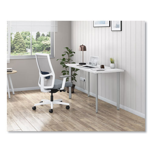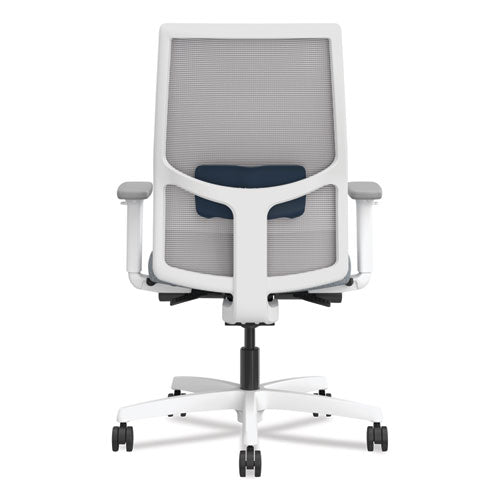 Ignition 2.0 4-Way Stretch Mid-Back Mesh Task Chair, Navy Blue Lumbar Support, Basalt Seat, Fog Back, White Base