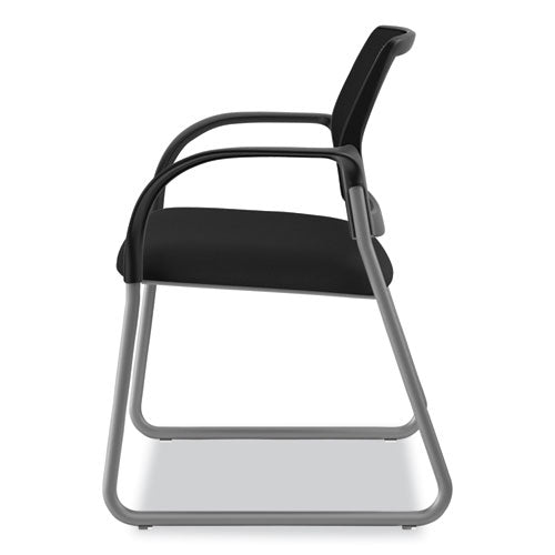 Versatile enough for the private office or the lobby. Breathable mesh back offers comfort and support. Polyester upholstered seat with Nano-Tex® for superior stain resistance. Sturdy sled base. Simple assembly with no tools required.Note: This is a non-returnable item.