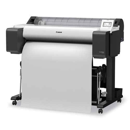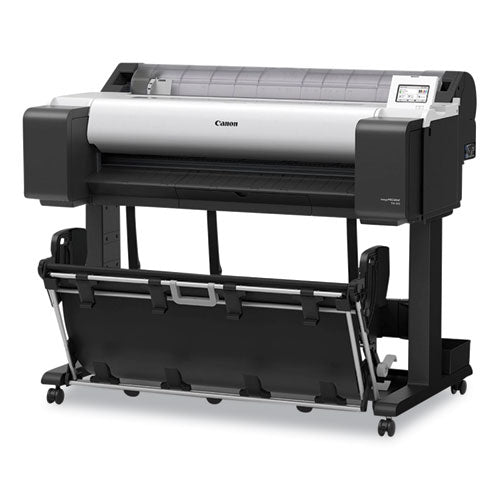 Redefining what is possible with a large format printer, the TM Series printers offer enhanced productivity, efficiency, and usability over the previous generation of the imagePROGRAF TM and TA series printers. The imagePROGRAF TM-355 is great for low-volume users in small spaces printing posters, CAD documents, signage, and more with vivid color reproduction with newly formulated magenta ink and color calibration. The newly designed imagePROGRAF TM Series has been built for more efficiency and comfort compared to previous models with its new flat-body design, full-frontal operation, and new 4.3" adjustable user interface screen.Package Includes: Stand/Flat Stacking Basket; Starter Ink Tanks; Print Head; Maintenance Cartridge; 2" Roll Holder with 3" Adapters; Documentation; Power Cable; Screw