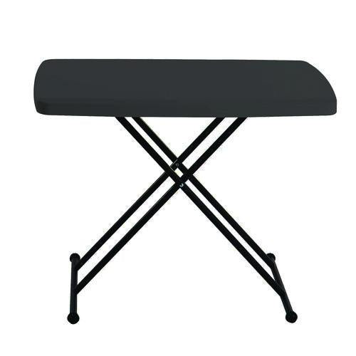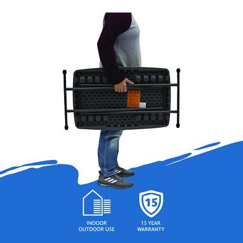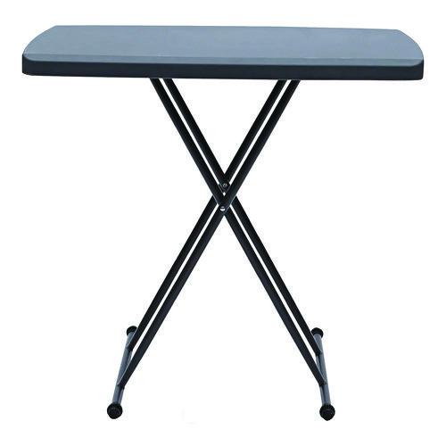 Lightweight, durable and portable. The perfect size table provides extra space. The dent- and scratch-resistant top is easy-to-clean and is constructed of blow molded high-density polyethylene. Heavy gauge, sturdy 1" steel tube legs, with charcoal gray powder coat finish, folds into recessed channels for easy storage. Height is adjustable at either 25" or 28". Ideal for indoor or outdoor use.