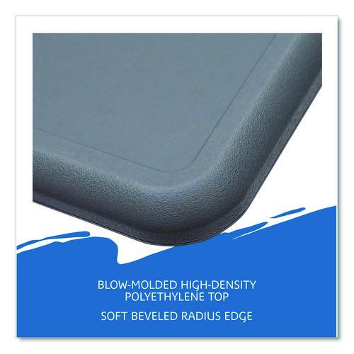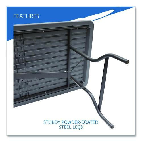 Folding tables so multi-functional you'll wonder how you lived without them. Industrial-grade construction more than stands up to the tough demands that offices, schools, hotels and conference centers make. An attractive, contemporary design ensures they'll fit in wherever you place them. Dent- and scratch-resistant, easy-to-clean top is fabricated of blow-molded high-density polyethylene and features soft-beveled radius edges. Powder-coated, round metal-tube legs feature fold-out braces for extra strength and stability. Ideal for indoor and outdoor use. Tables nest together when stacked, with their legs folding into protective channels, to help you maximize your available storage space.