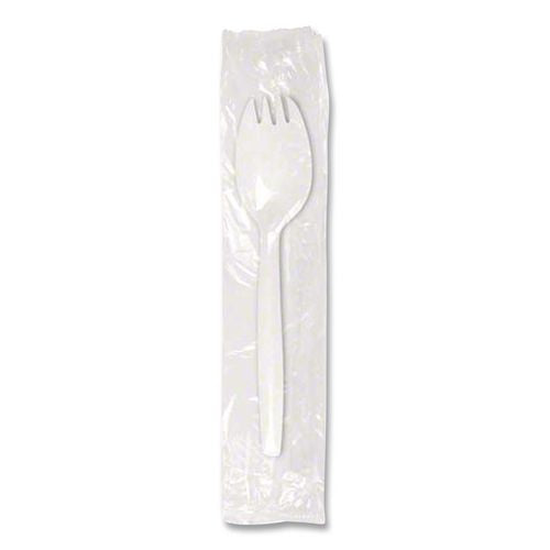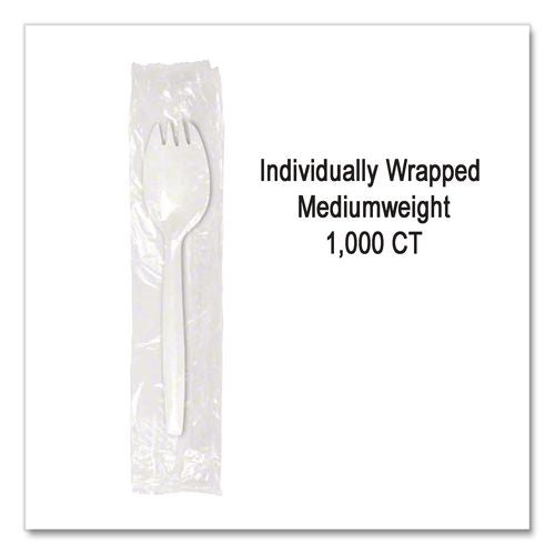 Individually Wrapped Mediumweight Cutlery, Spork, Plastic, White, 1,000/Carton
