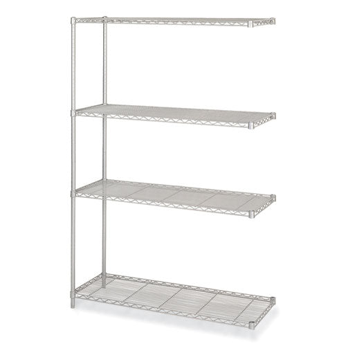 The Industrial Add-On Unit is a heavy-duty storage solution designed to expand your existing shelving system with extra-strength welded wire construction for maximum durability and support. Ideal for office storage, warehouses and commercial spaces, its open wire design allows for better air circulation, helping to keep stored items fresh while minimizing dust accumulation. The adjustable wire shelves, which move in 1-inch increments, provide a customizable setup to accommodate a variety of storage needs, from bulky equipment to smaller office supplies. This unit includes four sturdy steel shelves, four durable posts and easy-to-use snap-together clips, making assembly fast and hassle-free. Whether you're optimizing your workspace or creating an organized storage area, the Industrial Add-On Unit delivers strength, functionality and efficiency in a sleek, professional design.Package Includes: (4) Shelves; (2) Posts; Snap-Together ClipsNote: This is a non-returnable item.