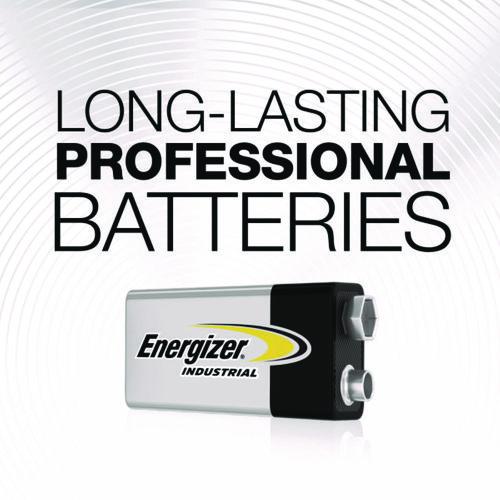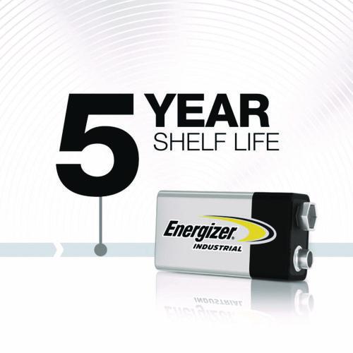 Power your industrial and professional devices with Energizer Industrial 9V Alkaline Batteries. Whatever the job, their proven performance keeps everyday devices working at construction sites, facility maintenance, repair services, medical centers, business offices, classrooms, and more. And because your tools of the trade are an investment worth protecting, these industrial 9V batteries are made to last, not to leak. They also hold their power with up to five years of shelf life, so go ahead and stock up. Take all of that into consideration and you've made a pretty powerful case for this battery. So, for the precision devices and everyday equipment of your work site, depend on the power and protection of Energizer Industrial 9V Alkaline Batteries.