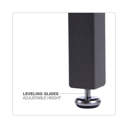 Modern, industrial style desk provides a clean and compact workspace that's perfect for the home or small office. Use it as a table, writing desk, or computer station to create a productive workspace in smaller areas. Attractive, durable laminate top with squared steel powder coated legs. The cross-stability bar adds style and prevents rocking to ensure a stable feel. Leveling glides included to adjust for uneven floors.