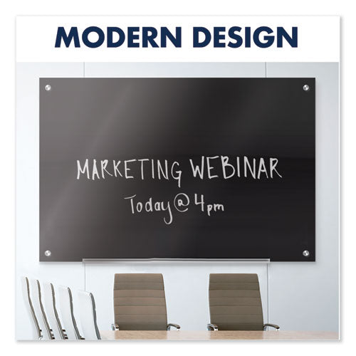 Ultra-modern, tempered-glass-surface whiteboard delivers high-quality performance. Durable, tempered-glass provides a smooth writing platform. This frameless board is a good fit for any contemporary office and will help you stay organized. Hardware is included for simple and secure wall mounting. Occasional cleaning is recommended for best performance.Package Includes: (1) Quartet Dry Erase Marker; (2) Rare-Earth, High-Power Magnets