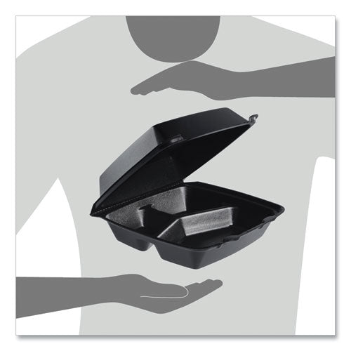 Insulated Foam Hinged Lid Containers, 3 Compartments, 7.96 x 3.2 x 8.36, Black, 200/Carton