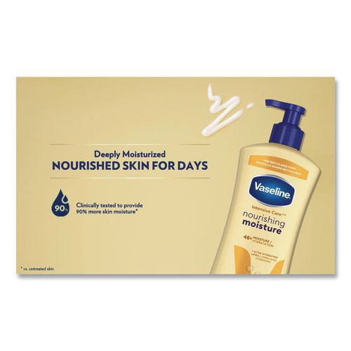 Moisturizes dry skin. Absorbs fast for a non-greasy feel. Infused with micro-droplets of Vaseline® Jelly and rich moisturizers. Clinically proven to moisturize deeply within the first application, for noticeably healthier looking skin. Fast-acting lotion absorbs quickly, allowing you to get dressed within minutes of application. Daily body lotion best for: dry skin, rough skin.