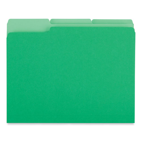 Interior File Folders, 1/3-Cut Tabs: Assorted, Letter Size, 11-pt Stock, Green, 100/Box