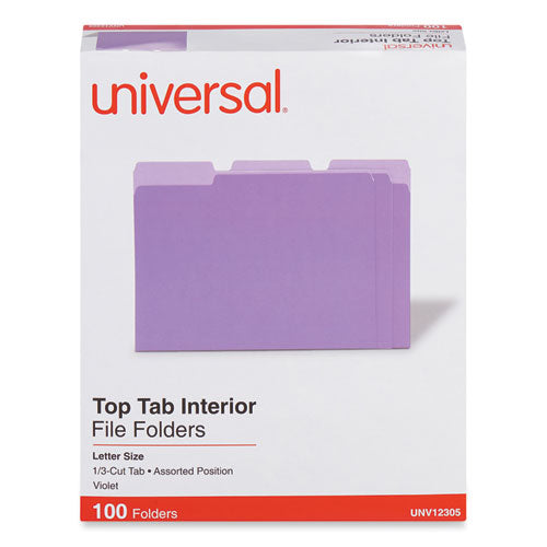 Interior File Folders, 1/3-Cut Tabs: Assorted, Letter Size, 11-pt Stock, Violet, 100/Box