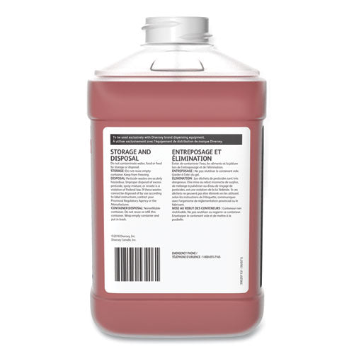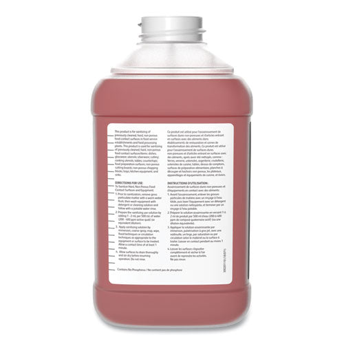 A no-rinse sanitizer for food contact surfaces. This product is designed for use in dairies, restaurants, bars and institutions where sanitation is of prime importance. Pink in color with a quaternary scent.