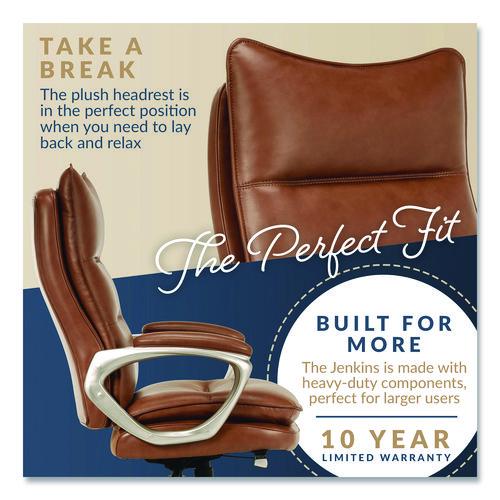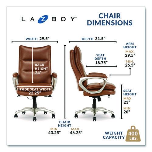 Embrace sophisticated style and luxurious comfort with the La-Z-Boy Jenkins executive office chair. For those who demand the best in comfort and performance, look no further than this first-class office chair. Combining classic lines with a modern design, its plush multi-layer padding combines with adjustable features for unparalleled support when you sit. The five dual-wheel casters are designed to make it easy for you to move around, helping you stay productive and finding the perfect angle for any task at hand. This seat is rated for 400 lbs, so you can have peace of mind knowing it was built to handle any challenge. Whether tackling long days of work or enjoying some extra time on your laptop, the La-Z-Boy Jenkins executive office chair will be right there beside you, offering unbeatable comfort and style. With this chair, functional luxury is always within reach.