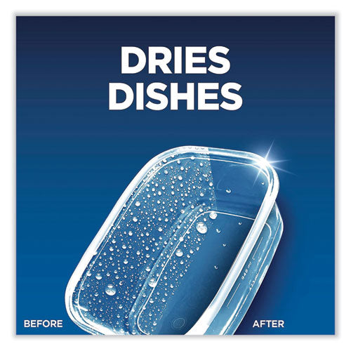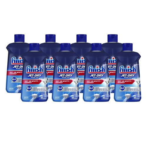 Simply fill your machine's rinse aid compartment with Finish Jet-Dry 3-in-1 to solve three problems at onceit rinses, dries, and shines what detergent alone can't! Rinses away leftover food and film. Dries left behind water droplets. Clears spots for a brilliant shine. Easy to use, simply refill the rinse aid compartment every few weeks, not every wash.Package Includes: Includes eight 8.45oz bottles per carton