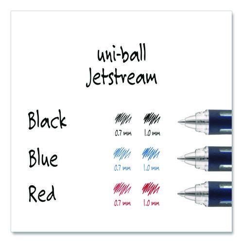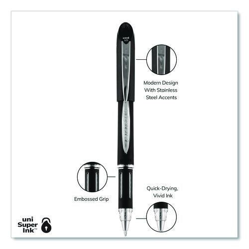 Write with greater speed and efficiency using JETSTREAM Ballpoint Stick Pens from uni-ball. The pens deliver an incredibly fast, clean writing experience that helps you jot down your thoughts and ideas quickly. Combining the silky smoothness and vivid vibrancy of a gel pen with the fast-drying efficiency of a ballpoint, these JETSTREAM ballpoint pens offer the best of both worlds. Quick-drying ink resists smudges and smears, making this pen suitable for left-handed writers. An embossed grip offers better control when writing, while contemporary stainless steel accents offer a stylish appeal. JETSTREAM stick pens feature pigment-based uni Super Ink technology that settles deep into the paper, offering three-way protection against fraud, fading and water.
