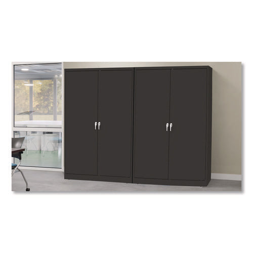Commercial grade jumbo assembled steel combination cabinet. Fully assembled and ready for immediate use. Super heavy-duty construction built to handle all your storage requirements. Two brushed chrome handles. Right handle uses three-point keyed locking to secure both doors. Storage cabinet is electrostatically painted with a tough, long lasting powder finish to ensure years of lasting beauty. Storage cabinet is electrostatically painted with a tough, long lasting powder finish to ensure years of lasting beauty.