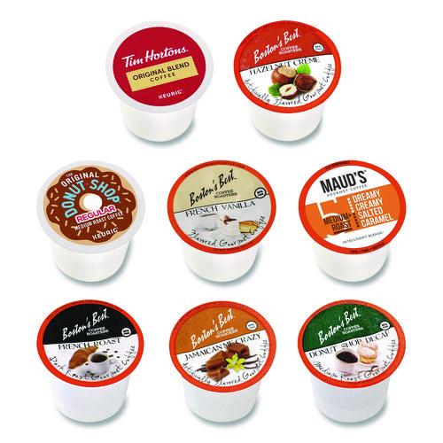 Change up your morning coffee routine with this Assorted K-Cups Box. Choose from eight different flavors from brands like Tim Horton's, Donut Shop, McCullagh, Maud's and Boston's Best. With 40 K-Cups, this variety box will keep the office or home very happy! Make the most of your Keurig Coffee maker with these assorted K-Cups. Products may vary by flavor per brand and substitutions may be made due to availability.Note: This is a non-returnable item.