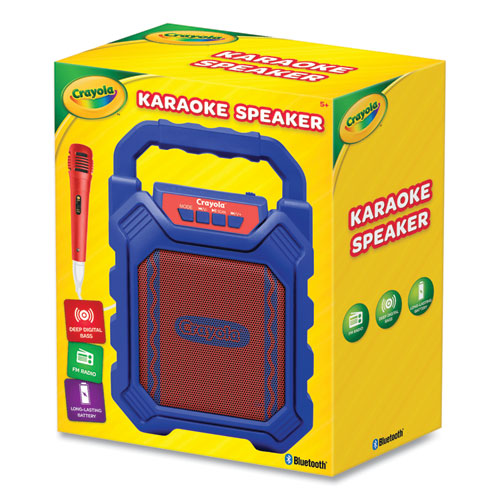 This karaoke speaker has deep bass for great sound, as well as an FM radio. Features colorful light FX and is Bluetooth compatible.