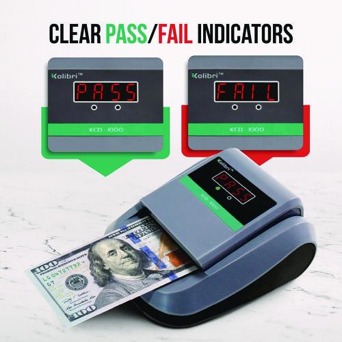 Ensure only genuine currency goes into your till with the KCD-1000 Counterfeit Detector. Featuring advanced ultraviolet, magnetic, infrared, dimensional and thickness systems as well as chain-note, half-note and double-note detection, it can catch various counterfeiting techniques and currency discrepancies. Simply insert a bill in any of the four possible orientations; and in as little as half a second, its illuminated red display indicates whether the bill gets a "pass" as legal tender or a "fail". Accurate, quick and efficient with a compact, lightweight, battery-powered design, the KCD-1000 is perfect for restaurants, night clubs, merchandise kiosks, vendor carts and trucks any point-of-sale scenario, whether its sharing space with a cash register or being carried by hand. Wherever you need a quick and easy, accurate way to check the legitimacy of the currency you receive, this device can save you time and money.Note: This is a non-returnable item.