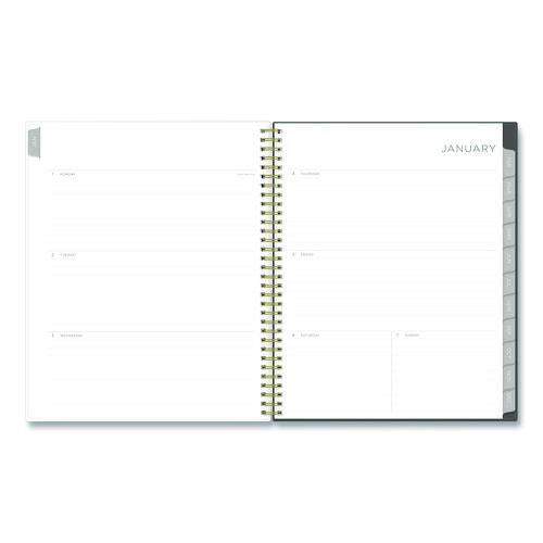 Plan your way through the year with this beautiful Kelly Ventura for Blue Sky® book. Inspired by the summertime blooms around her Michigan studio, this full-year planner features a lush Midnight Garden floral design with elegant gold foil accents and polished metal twin-wire binding. Track appointments, reminders, ideas and to-do lists on the weekly spreads, and streamline your schedule with the big-picture monthly views. Each month is marked with a durable laminated tab for easy access. In the back of the book, you'll find handy reference calendars and extra notes space for everything that doesn't quite fit into any one month or week. Six bonus past-year, un-tabbed monthly spreads simplify annual transitions.Note: This is a non-returnable item.