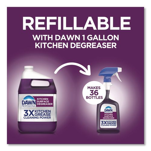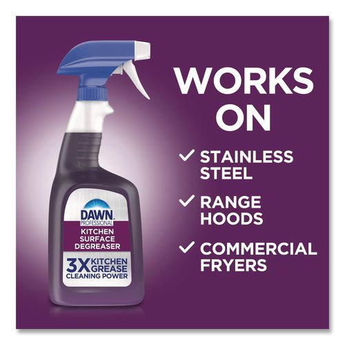 Dawn® Professional Kitchen Surface Degreaser is powerful on the toughest oil and grease found in commercial kitchens to clean range hoods, stoves and ovens, stainless steel surfaces, commercial fryers, and more. Dawn® Professional is also suitable to clean commercial kitchen surfaces such as backsplashes and counters. This concentrated alkaline-based degreasing formula cuts through grease and oil and designed specifically for food grease.