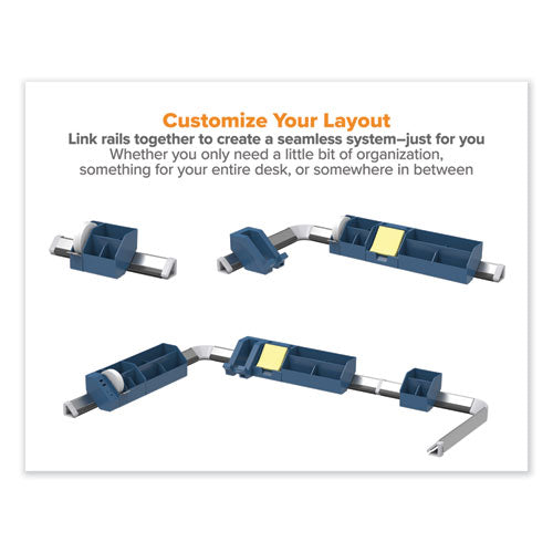 Get ready to do some major office organization with this 12-Piece Konnect™ Desktop Organizer and Cable Management Kit. Coming with three cord management rails that hide wires and dock accessories, this kit also includes a short and a wide storage bin. Holding pens, tacks, staples and more, they each come with dividers and lids to conceal messy clutter. The tape dispenser is slim and comes with office tape so you're ready to work. The sticky note holder displays and keeps business cards and sticky notes nearby. You also get a 3" x 3" pad of yellow sticky notes. Charge up with the power hub. It features one single outlet and two USB ports. The phone dock also features a USB charging port and safely docks your phone for easy viewing and use.Package Includes: (2) 12" Cord Management Rails; (1) 21.5" Cord Management Rail; (1) Sshort Storage Bin; (1) Wide Storage Bin; (1) Tape Dispenser; (1) Sticky Note Holder; (1) USB Phone Dock; (1) Power Hub; Mounting HardwareNote: This is a non-returnable item.