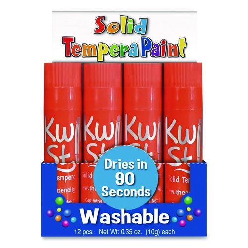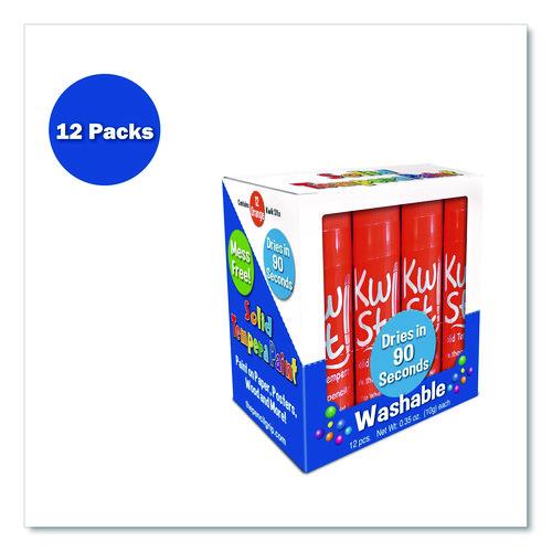 Single color Kwik Stix pack is great for projects needing certain colors replaced quicker than others. No cups, smocks, water or brushes needed. Great on poster paper, cardboard, wood, canvas and more. These washable paints are non-toxic and nut, egg and gluten free. Simply uncap, twist and paint!Note: This is a non-returnable item.