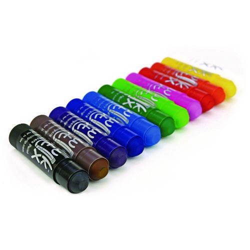 Tired of the endless mess of painting? Fear not! These solid paint sticks take the mess out of painting while keeping all the fun! Simply uncap, twist, and paint! Fast-drying formula allows them to dry in 90 seconds while still leaving a paint-like finish! No cups, smocks, water or brushes required. They come in vibrant colors with coverage that won't crack. Great on poster paper, cardboard, wood and canvas. Nut-, egg- and gluten-free! Nontoxic and washable.Note: This is a non-returnable item.
