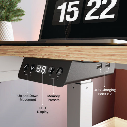 L-Shaped Standing Desk with Keyboard Tray, Left Desk, 61.25" x 43.25" x 34.38" to 52.88", Maple White/White