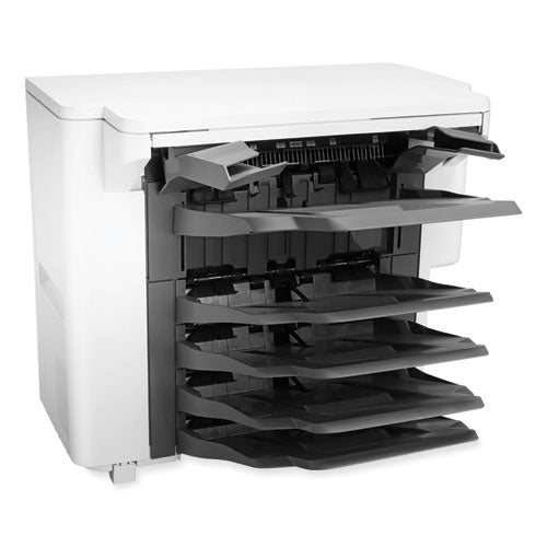 Improve workflow management and accommodate multiple users by adding automatic stapling (up to 50 sheets) and stacking with job offset to your HP LaserJet printer. Monitor your printer less frequently with automatic print job stapling and stacking. This accessory expands the printer's total output to 1,300 sheets with six separate bins. Save time finding your print job with jobs sorted into neat stacks.Package Includes: Hardware Install GuideNote: This is a non-returnable item.