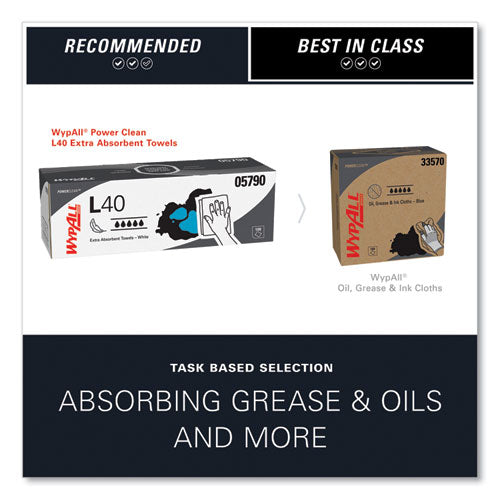 Regardless of your task, industry or budget, our WypAll® wipes, towels and cloths are designed to give you the durability, absorbency and versatility of a laundered cloth with the cost efficiency and hygiene of a disposable. Trust the WypAll* Brand, the one that sets the standard for excellence in wipers. WypAll* L40 Towels are effective wipers that absorb liquids lightning-fast. These towels are made of bonded cellulose using DRC (double re-creped) technology for strength, softness and absorbency. As a wiping towel, it soaks up liquids fast, but all you'll feel is softness, thanks to a plush, touchable outer layer. In fact, it's a popular choice for patient wiping in healthcare industries, for bathing and patient drying. These utility towels are specially designed to absorb liquids, lubricants and oils (in restaurants for wiping counters, in mechanic shops, industrial and commercial factories and more), yet they're soft enough for use on face and hands. Experience the difference in superior absorbency and cleaning at your home or office today! As we look towards the future, Kimberly-Clark Professional is committed to providing a wide collection of essential products and services that help make your workplace exceptional. Our dedication to innovation has helped businesses confidently navigate change and empowered people at work for nearly 150 years and we are committed to do so for years to come.